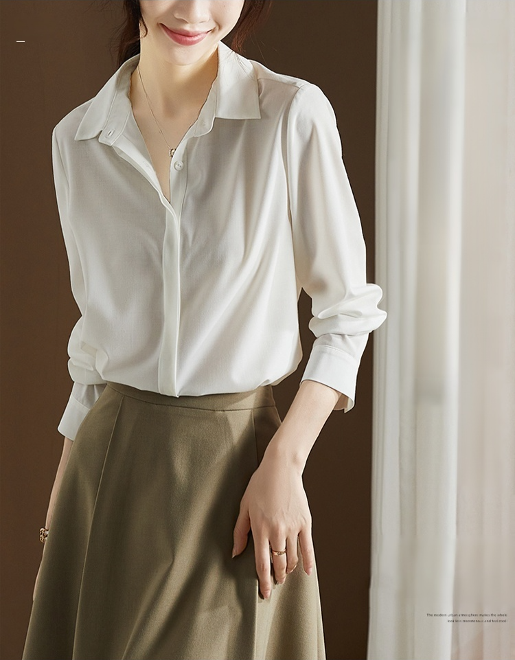 봄 한범 여 긴팔 셔츠 솔리드 이너 쉬폰 상의 봄 한범 긴팔 셔츠 이너 쉬폰 셔츠