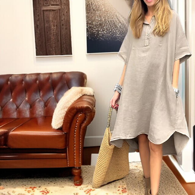캐주얼 면 마 롱 원피스 넥 단추 무지 롱 원피스 캐주얼 면 마 롱 원피스 무지 원피스