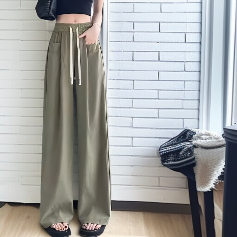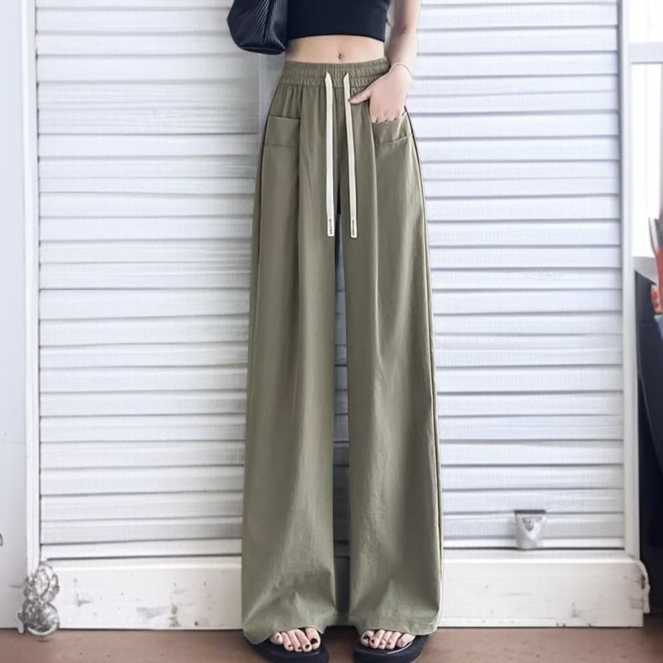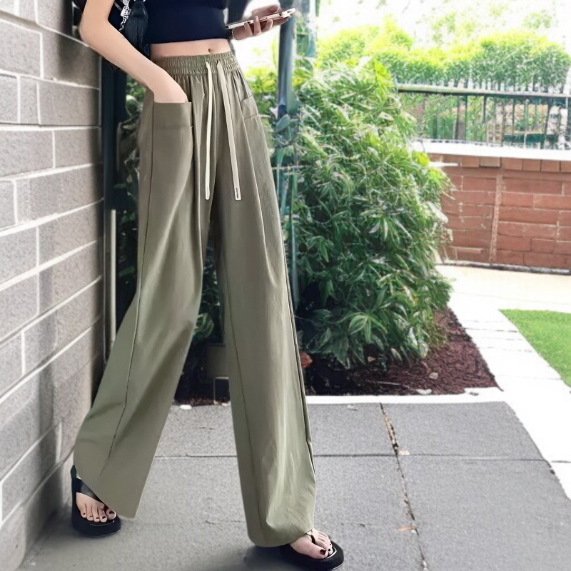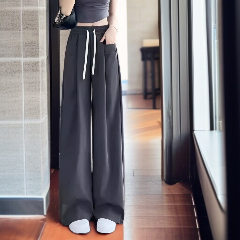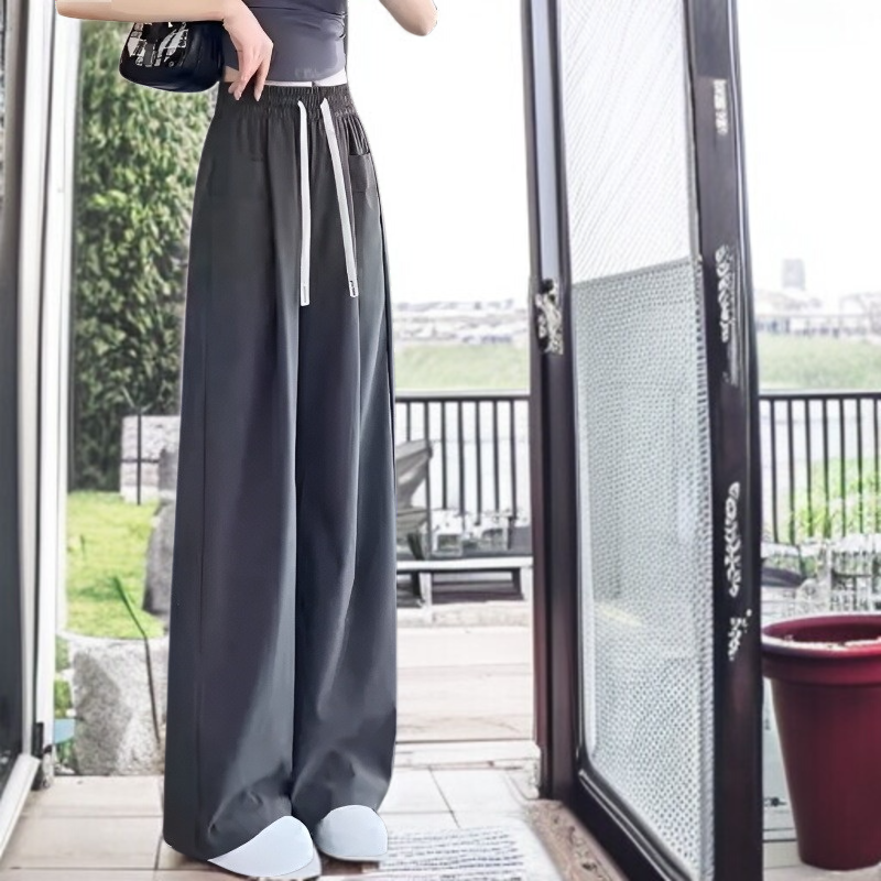 하이웨스트 아이스 롱 와이드 팬츠 여름 얇은 일자 슬림 와이드 팬츠 처짐 키 큰 통통 Mm 와이드 팬츠 캐주얼 팬츠